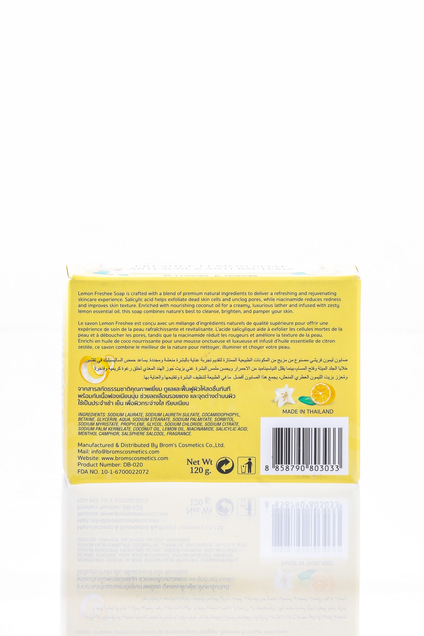 Awaken your skin and senses with the refreshing power of D+ Branner Freshee Lemon Soap. Enriched with Salicylic Acid and Niacinamide, this soap is specially crafted for oily and acne-prone skin. Its citrusy essence purifies deeply, balances oil levels, and restores your skin’s natural glow.