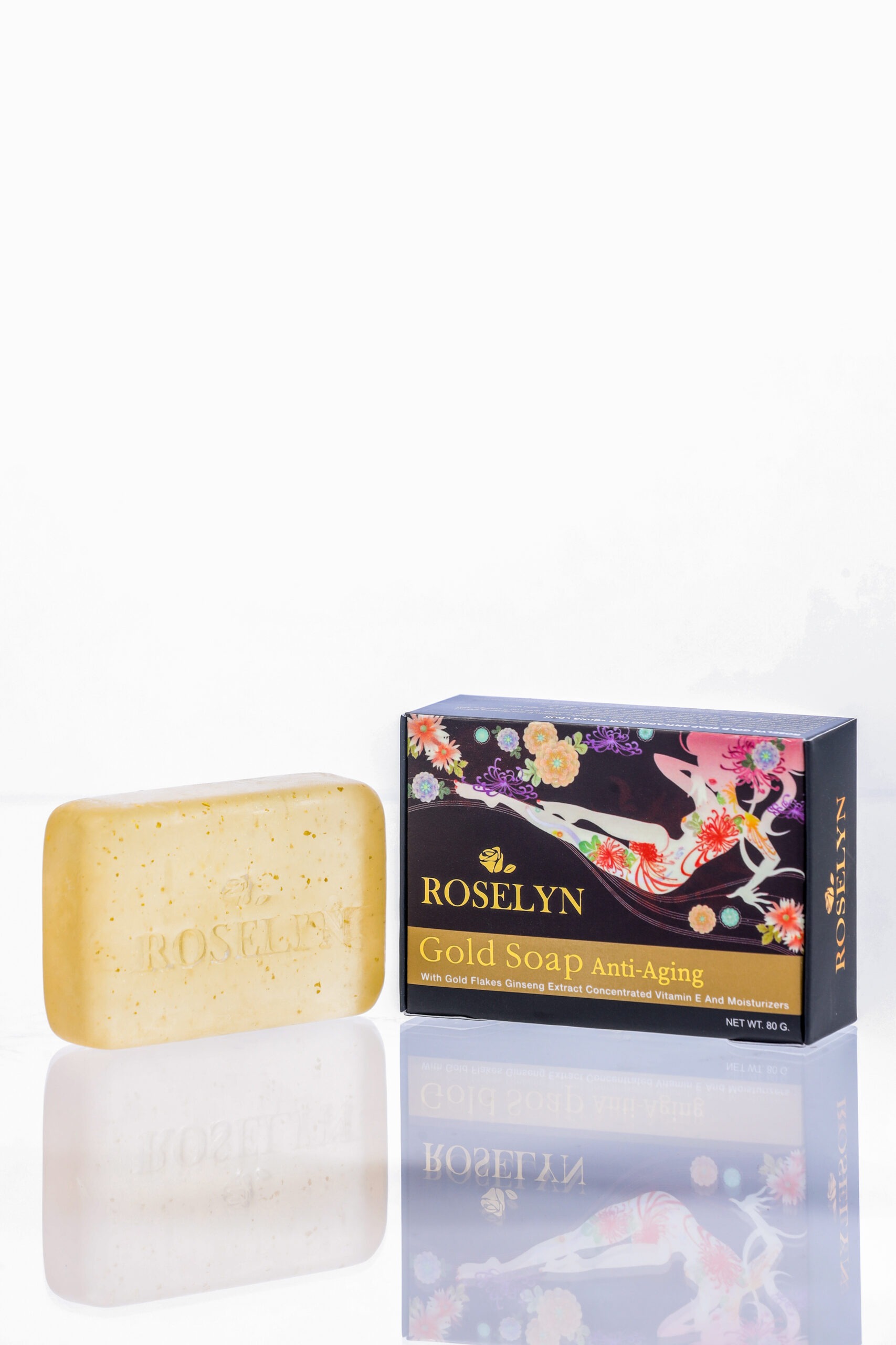 Turn back the clock with Roselyn Anti-Aging Gold Soap, a luxurious facial bar enriched with real 24K gold flakes, ginseng extract, and Vitamin E. This powerful age-defying blend revitalizes tired, mature skin while restoring its natural glow, firmness, and elasticity. Gentle yet effective, it transforms daily cleansing into a nourishing skincare ritual.